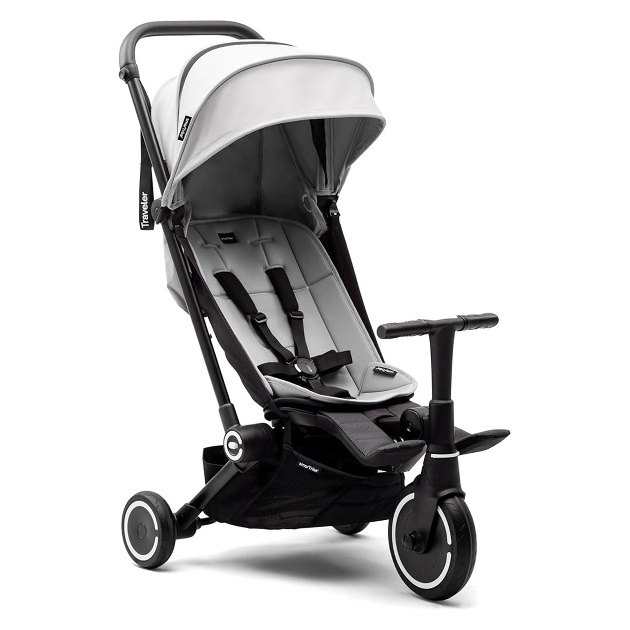 عربة الأطفال Smartrike Traveler باللون الابيض إيفرست هي عربة عملية ومثالية للأطفال الصغار، تجمع بين الخفة وسهولة الحمل مع التصميم المدمج والقابل للطي، مما يجعلها مناسبة للسفر والخروج اليومي. يتميز كرسي العربة بإمكانية الإمالة شبه المسطحة لتوفير أقصى درجات الراحة للطفل أثناء النوم أو الجلوس، وتتحول العربة بسهولة إلى دراجة ثلاثية العجلات لتمنح الطفل مزيدًا من الاستقلالية مع تقدمه في العمر. تم تجهيز العربة بحزام أمان خماسي النقاط يوفر حماية كاملة للطفل أثناء الرحلات. الهيكل الخفيف والقابل للطي يسهل النقل والتخزين، وقد تم تصميم العربة لتوفر تجربة سلسة ومريحة لكل من الوالدين والطفل، مع الحفاظ على الأمان والاستقرار أثناء الاستخدام، مما يجعلها الخيار الأمثل للعائلات التي تبحث عن عربة متعددة الاستخدامات وخفيفة الوزن تناسب جميع الرحلات والنزهات.
