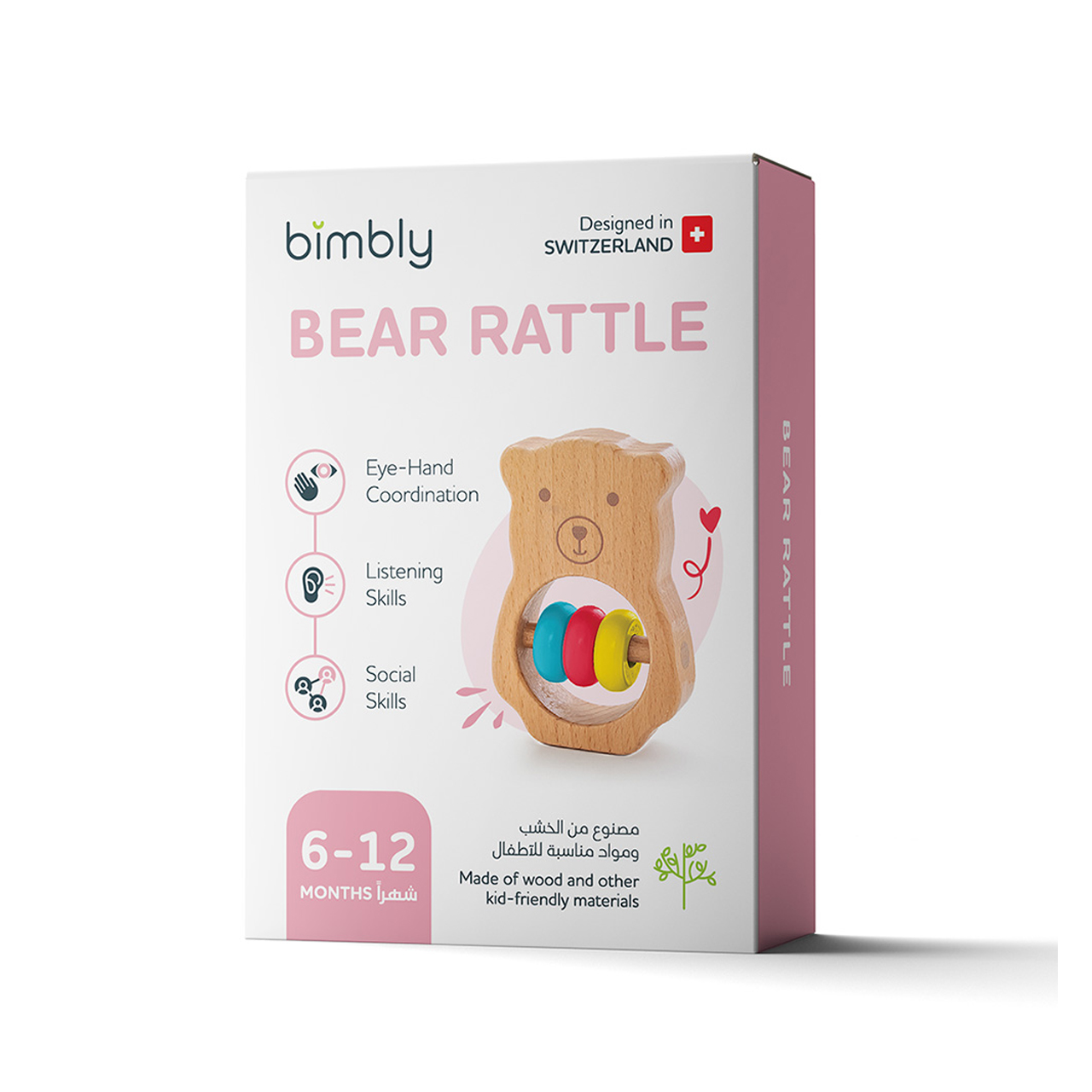 تخيلي صغيرك وهو يمسك خشاشة الدب من بيمبلي المصممة خصيصا للأطفال من عمر 6 إلى 12 شهرا ليست مجرد لعبة خشبية فاخرة بل مغامرة حسية مليئة بالاكتشافات والتعلم الممتع في هذه المرحلة العمرية يتطور دماغ الطفل بسرعة مذهلة وتتشكل روابط عصبية جديدة كل يوم من خلال التفاعل مع الأشياء والأشخاص من حوله ينمي طفلك مهاراته الحركية والمعرفية والاجتماعية يبدأ بفهم المفاهيم الأساسية مثل الأشكال والأصوات ليضع بذلك أساسا قويا للتعلم في المستقبل