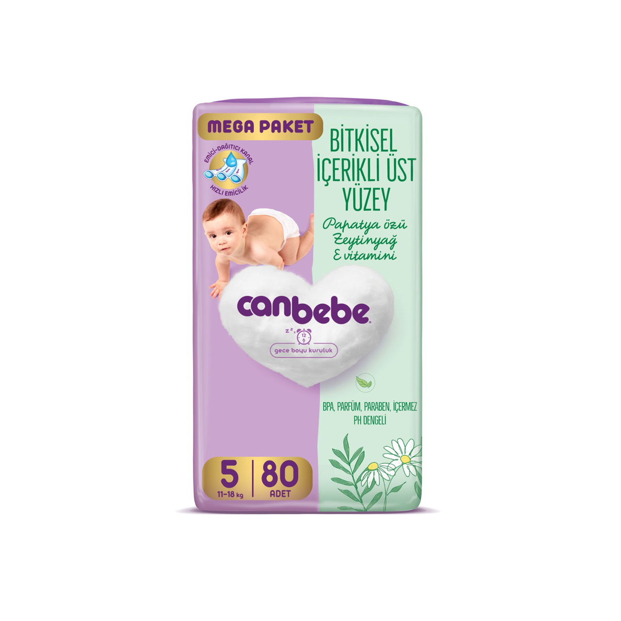 Canbebe - Number 5 - Baby Mega Pack Diapers, 11 - 18 kg- 80 Diapers