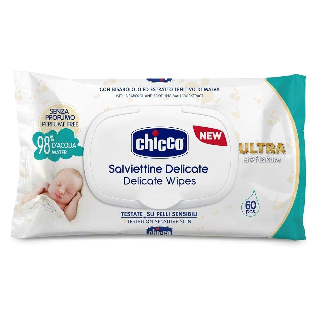 Chicco - Salviettine Delicate Ultra Soft & Pure 60pcs