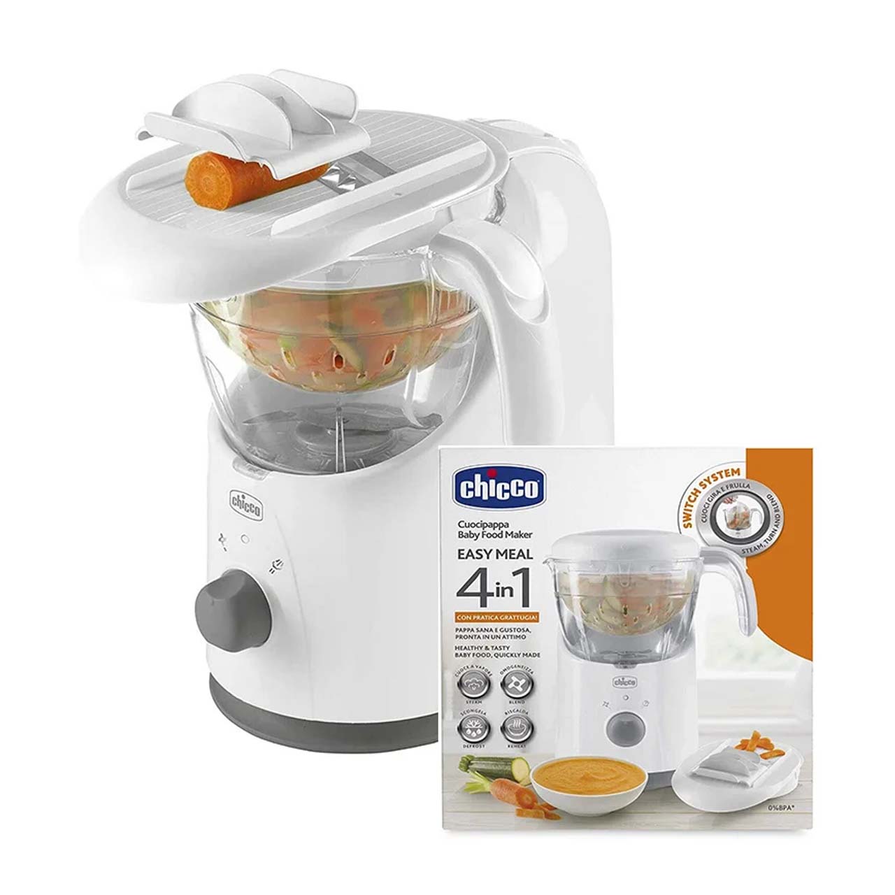 سلة قضم فريدة من نوعها للتبديل بسهولة من الطهي بالبخار إلى الهريس بيد واحدة فقط ، دون إضاعة أي وقت ، والتسبب في أي فوضى وبدون حرق. لا حاجة للمس المكونات الساخنة لصبها في الوعاء ، على الشفرات.