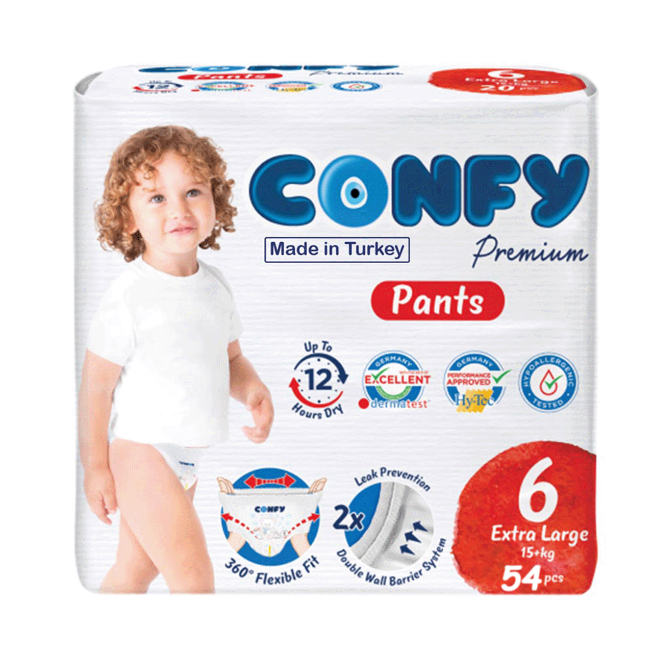 حفاضات Confy تمنح طفلكِ الراحة القصوى والحماية الكاملة بفضل نظام الحماية المزدوج ضد التسرب، وطبقة علوية ناعمة كالقطن، وتصميم مرن بزاوية 360° لملاءمة مثالية، مع طبقة خارجية قابلة للتنفس، ومؤشر بلون متغير لمعرفة وقت التغيير، وتوفير جفاف يدوم حتى 12 ساعة – كل ذلك بدون عطور أو بارابين، لراحة وأمان بشرة طفلك من أول يوم.