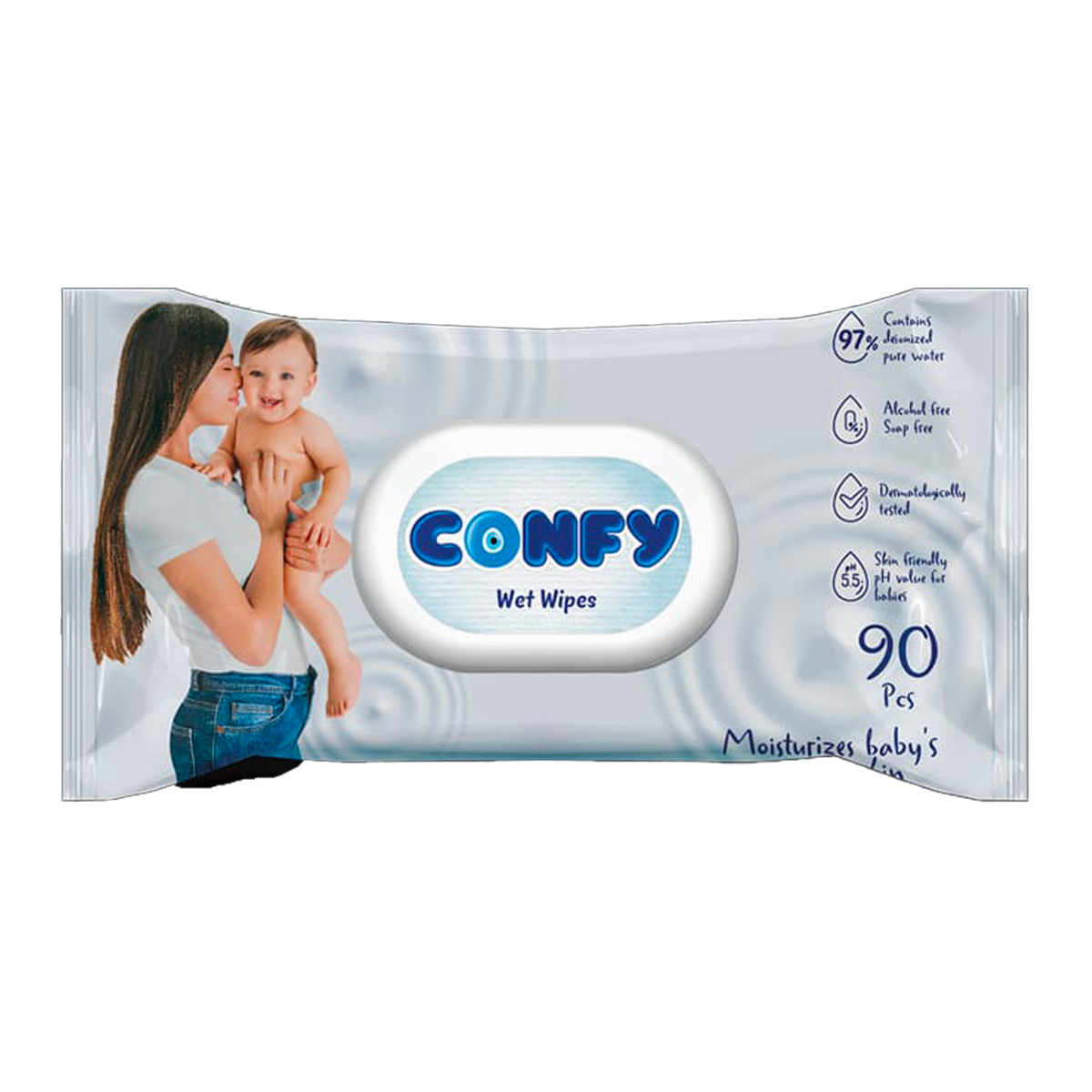 مناديل كونفي المبللة ترطب وتحمي بشرة طفلك الحساسة. تحتوي على 97% ماء نقي وخالية من الكحول والصابون، وآمنة جدًا للأطفال. سهلة الاستخدام وتنظف بلطف