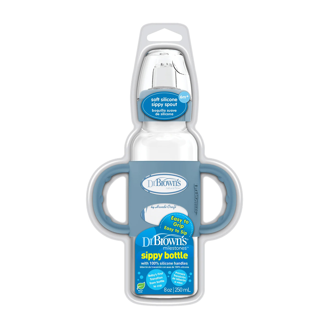 رضّاعة د. براونز المضادة للانسكاب تُعد خيارًا مثاليًا لمساعدة الطفل على الانتقال من الرضاعة إلى الشرب من الكوب. تحتوي على فوهة شرب ناعمة من السيليكون، ومقابض مريحة مصنوعة بالكامل من السيليكون، لتسهيل إمساك الطفل بالرضاعة. كما أن الغطاء يحافظ على نظافة الفوهة أثناء التنقل. يمكن استخدامها مع معظم رضّاعات د. براونز ذات العنق الضيق، وهي آمنة للغسل في غسالة الصحون.