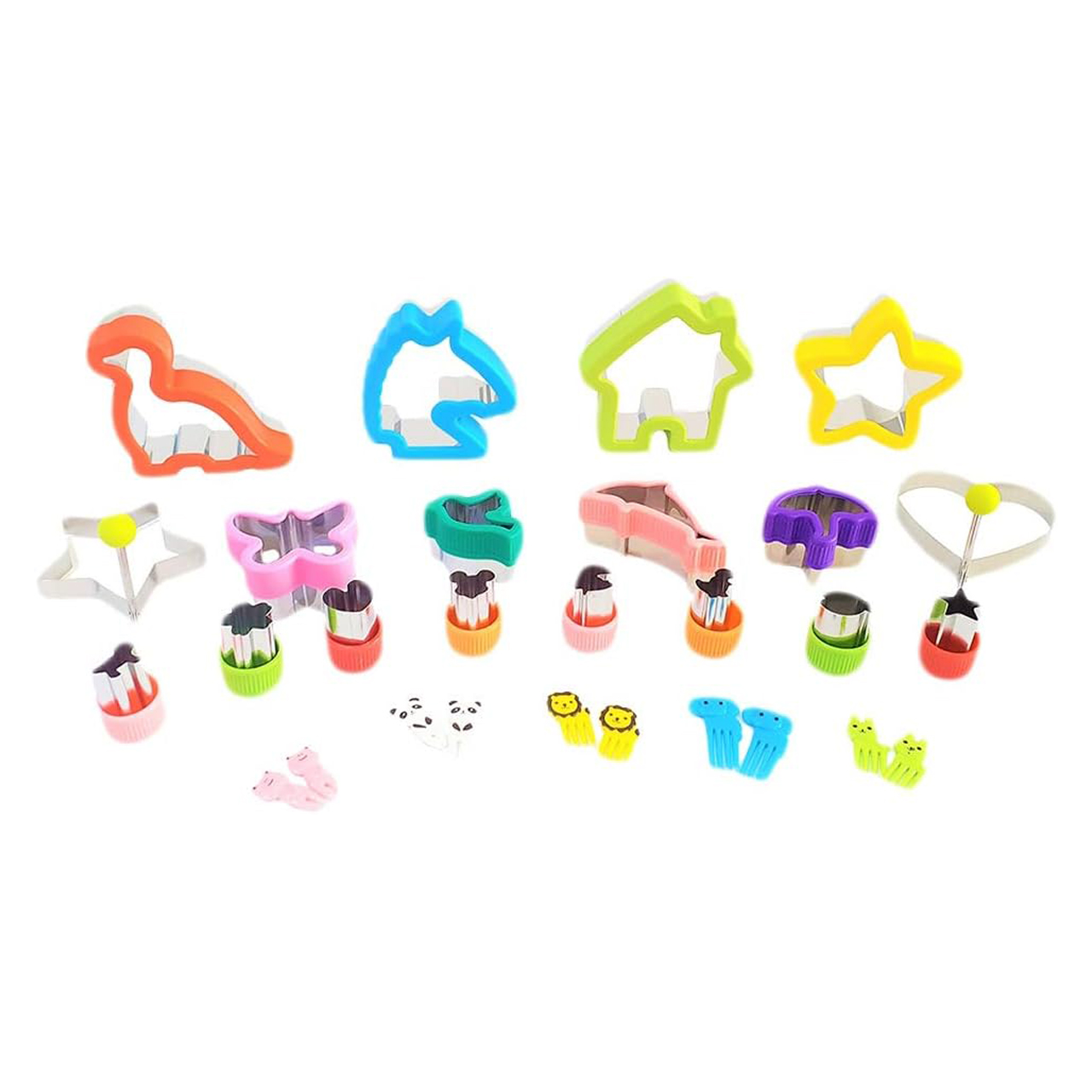 اجعل وقت الغداء ممتعًا مع هذه المجموعة المميزة من القواطع وأعواد الفواكه! تحتوي المجموعة على 4 قواطع ساندويتش، 4 قواطع بسكويت، 8 قواطع للخضار، 10 أعواد فواكه بأشكال حيوانات، و2 قالب بيض. مثالية لتحضير الساندويتشات والخضروات والبسكويت والبيض بأشكال مرحة يحبها الأطفال. تضيف لمسة من الإبداع والحماس إلى الوجبات الصحية