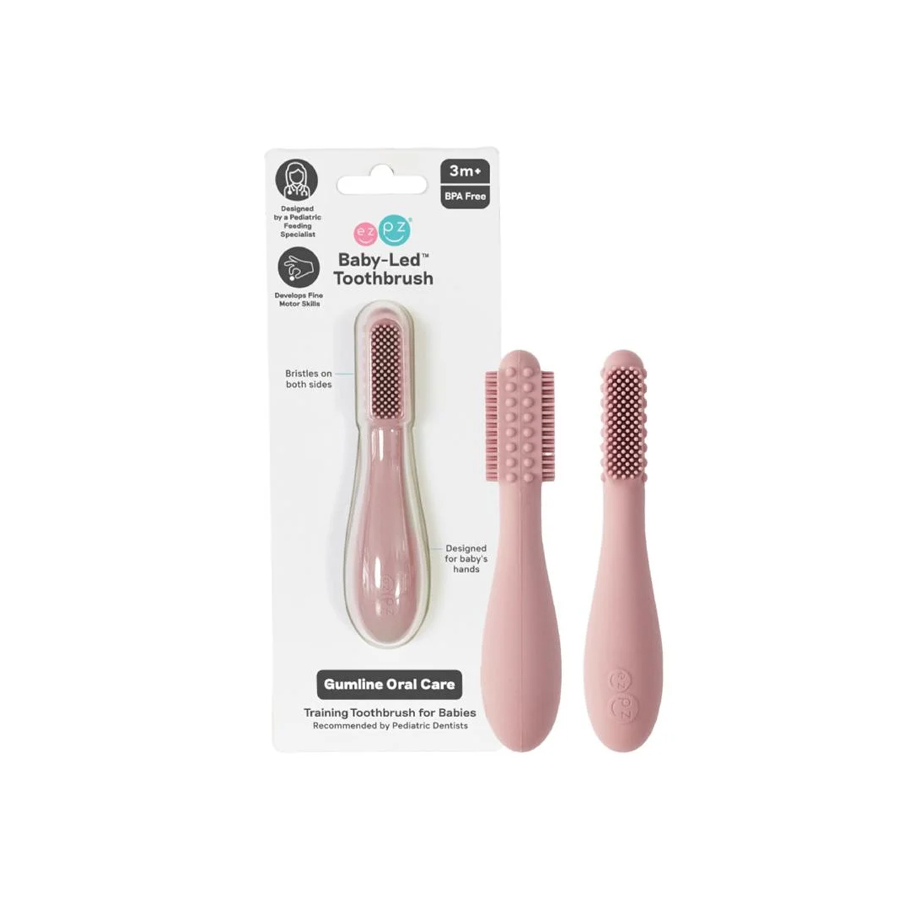 Ezpz - Baby-Led Toothbrush + Sensory Tongue Depressor Dual Pack - 2Pcs - Blush
