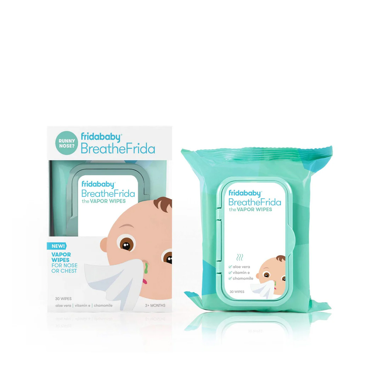 تخفيف مهدئ: مناديل بخار BreatheFrida مُشبعة بخلاصة الأوكالبتوس والبابونج والألوفيرا لتخفيف احتقان الأنف وتوفير راحة لطيفة من نزلات البرد للأطفال في أي وقت.
