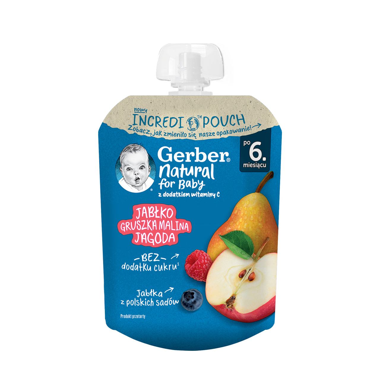 Gerber - Natural For Baby Apple, Pear, Raspberry, Blueberry Fruit Puree in an 80G