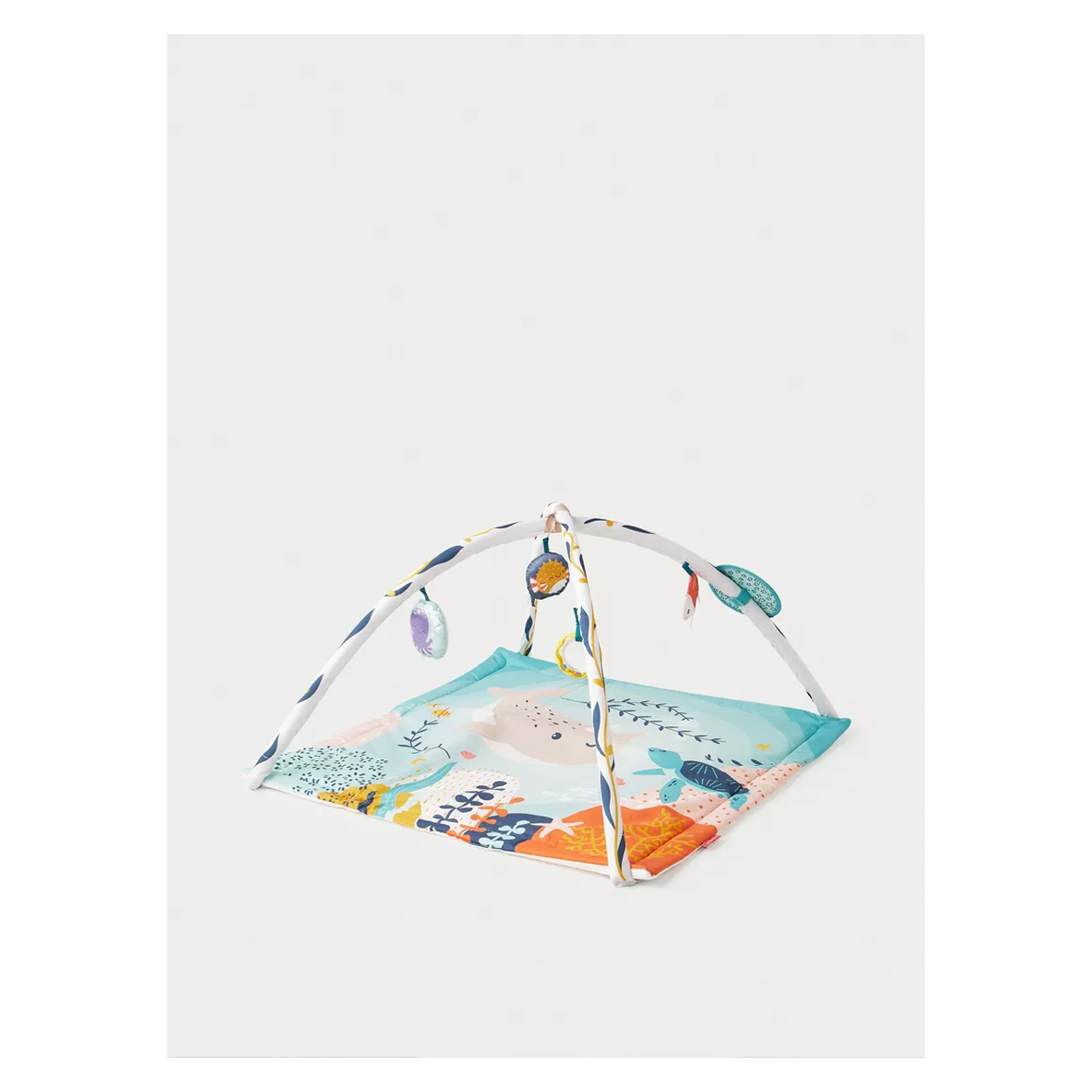 مفرش النشاط 3 في 1 يتميز بتصميم مستوحى من عالم البحر ويشمل ألعابًا معلقة تشد انتباه الطفل وتحثه على التفاعل والاستكشاف. يمكن استخدامه في أوضاع مختلفة مثل الاستلقاء، اللعب على البطن، أو الجلوس، ليتناسب مع مراحل نمو الطفل من الرضاعة حتى مرحلة الجلوس. يضم المفرش خمس ألعاب ترفيهية من بينها مرآة صغيرة، مما يساعد على تنمية التنسيق بين اليد والعين والمهارات الحركية المختلفة