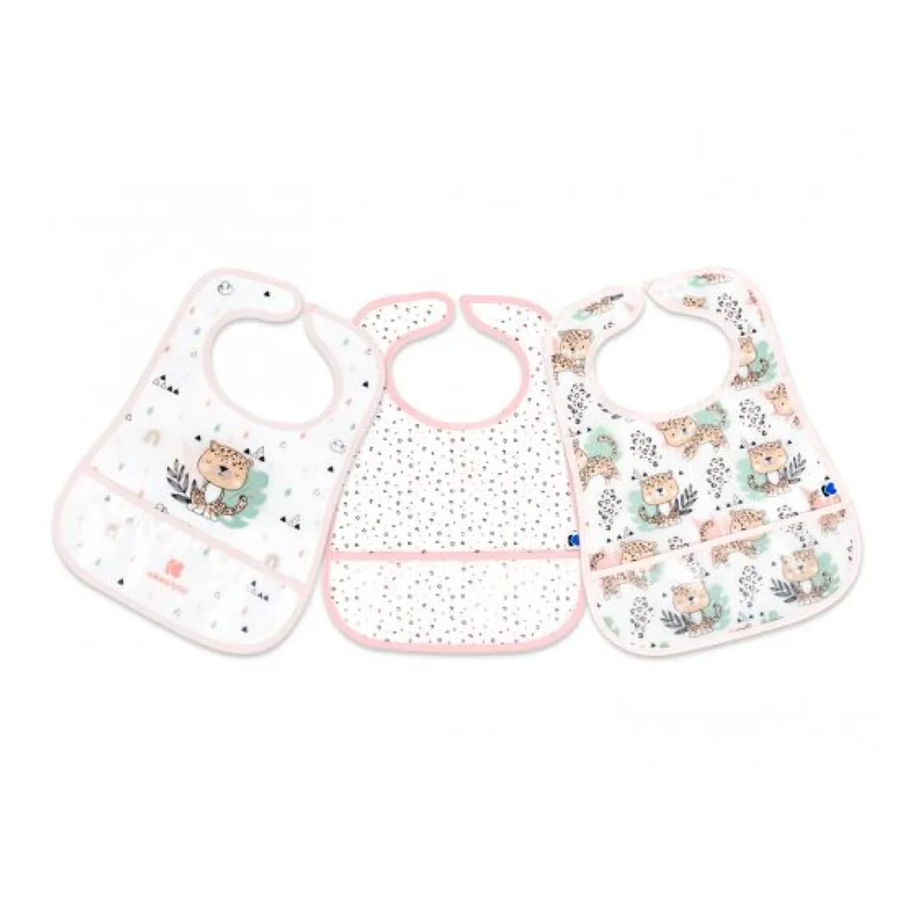 تُعد الصدريات من الأساسيات لكل طفل، وتضم هذه المجموعة 3 صدريات بتصاميم أنيقة وجذابة. تتميز هذه الصدريات المصنوعة من القطن الناعم بطبقة خارجية مقاومة للماء من EVA لحماية ملابس الطفل أثناء تناول الطعام، كما أنها مزودة بلاقط فتات مدمج يساعد في التقليل من الفوضى. تُثبت بسهولة باستخدام شريط لاصق يُضمن ثباتها وراحة الطفل أثناء الاستخدام