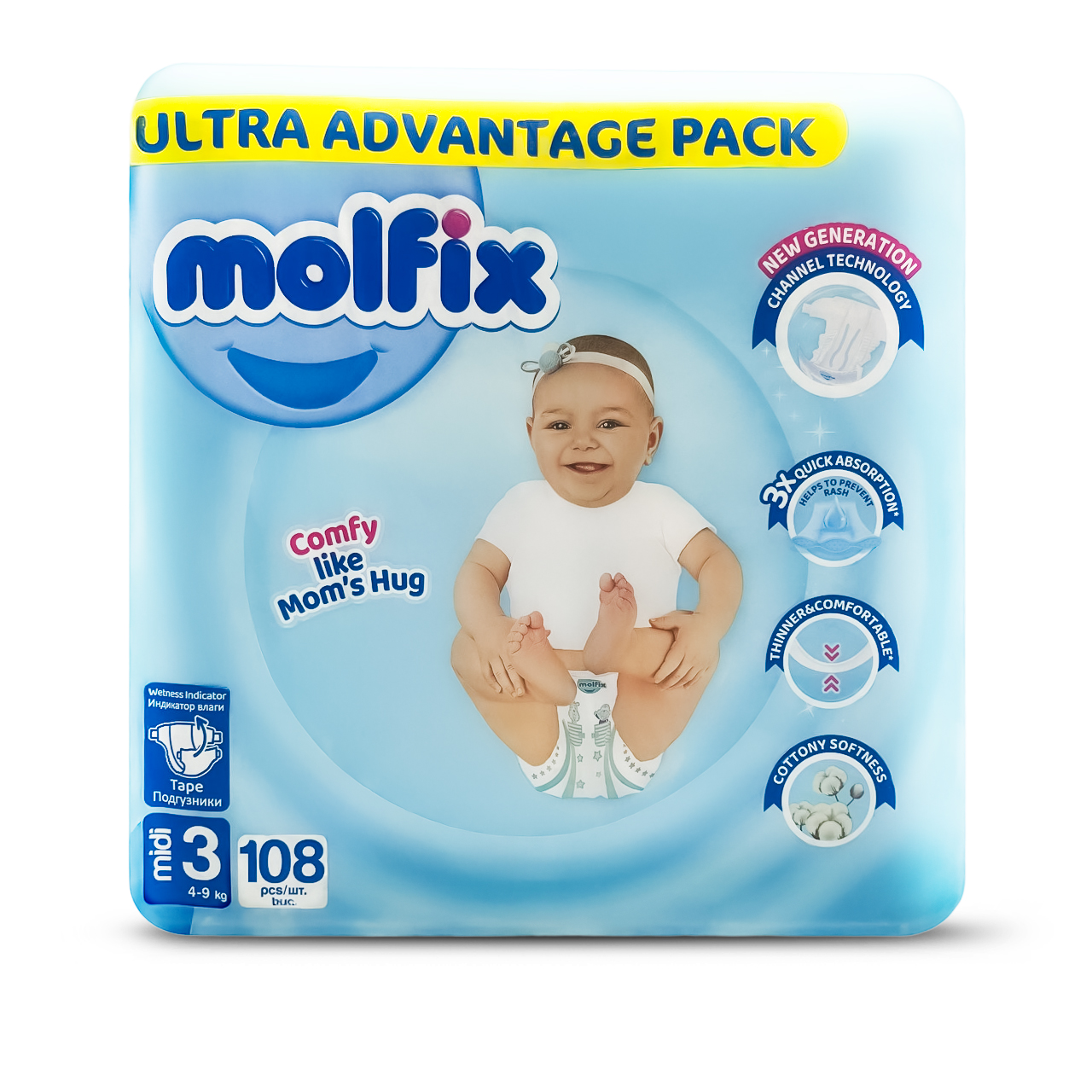 Molfix - Number 3 - Midi Tape Diaper Advantage Ultra Pack - 4-9kg - 108 Diapers