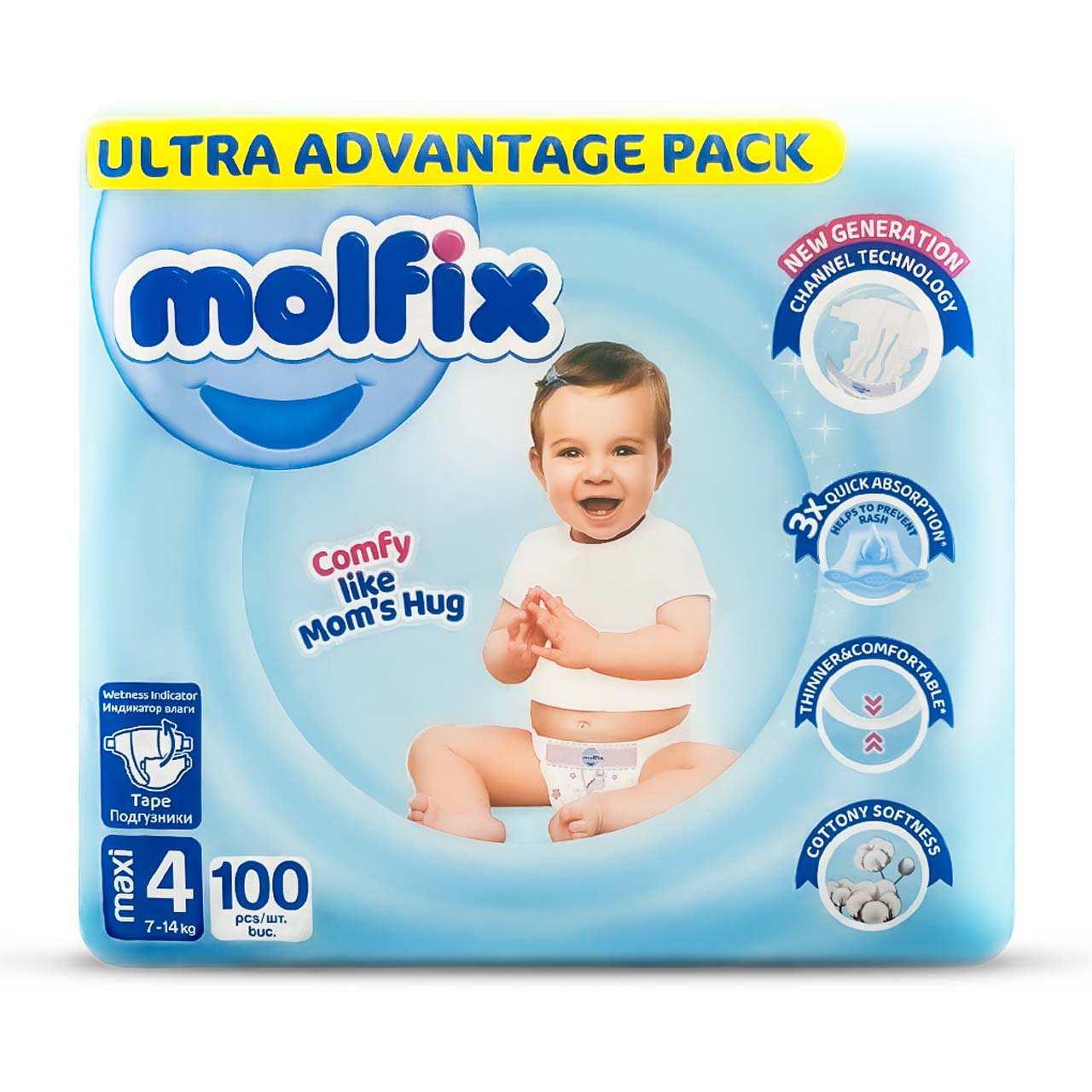Molfix - Number 4 - Maxi Tape Diaper Advantage Ultra Pack - 7-14kg - 100 Diapers