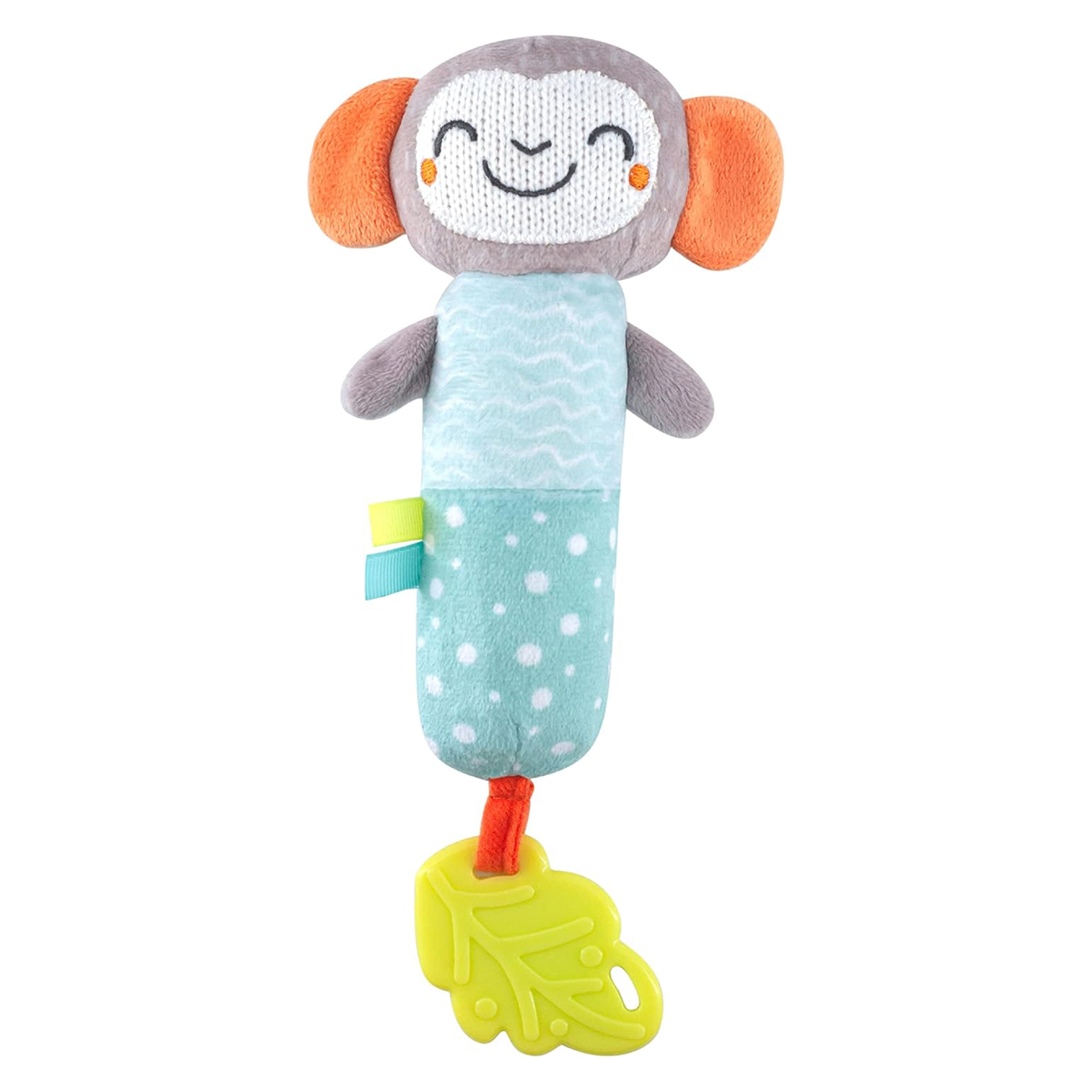 "تتميز لعبة الخرخشة اللينة بتصميم قرد من مون بأنها مصنوعة من خامة قماشية مختارة بعنايةٍ فائقة لتطوير إدراك الطفل بحاسة الرؤية واللمس والصوت. تتميز بخفة وزنها وليونتها ما يجعلها مثالية ليمسكها الأطفال بسهولة كما أنها مزودة بعضاضة أسنان. مصنوعة من خامات عالية الجودة ناعمة ومتينة
