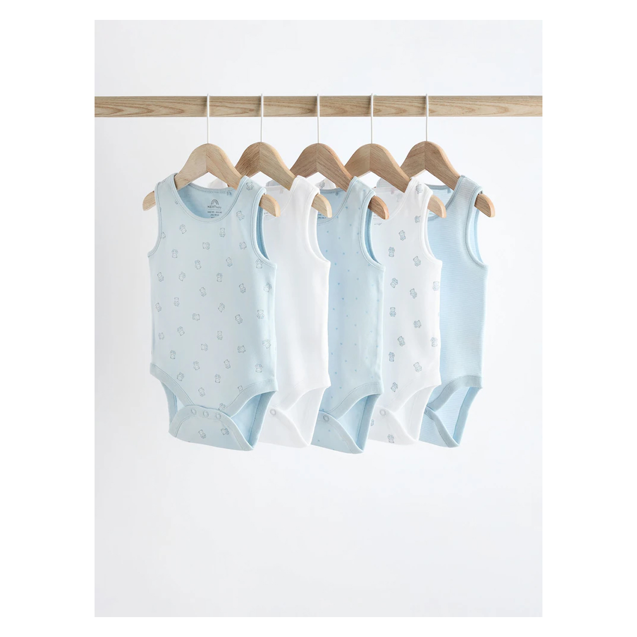 Next - Blue Baby Vest Bodysuits - 5 Pack - 9-12 months