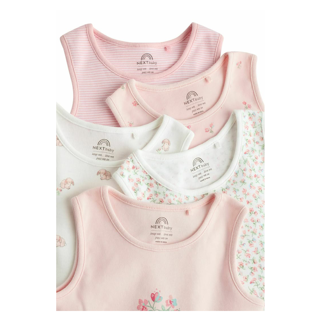 Next - Pink Baby Vest Bodysuits - 5 Pack - 6-9 months