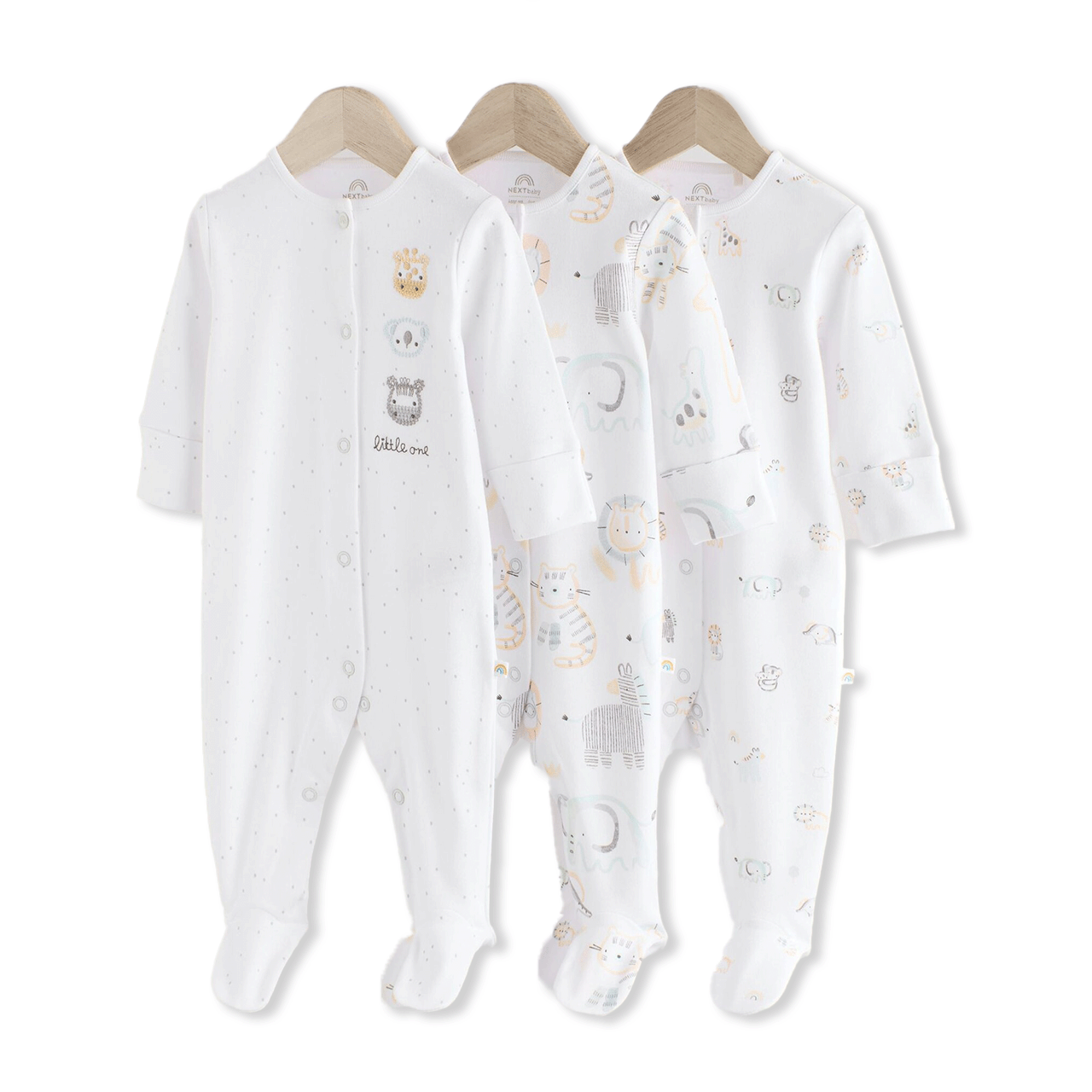 دلّلي صغيركِ بلمسة من الدفء والنعومة مع هذا الطقم المكوّن من 3 بيجامات نوم قطنية 100%، بتصاميم جذابة بطبعات حيوانات محببة للأطفال. صُممت بعناية لتوفر أقصى درجات الراحة والحماية، مع أزرار أمامية لسهولة تغيير الحفاض، بالإضافة إلى طبقة مانعة للانزلاق في القدمين من عمر 3-6 شهر. تصميم مثالي لكل الأوقات، يمنحكِ راحة البال، ويمنح طفلكِ نومًا هادئًا وحركة آمنة.