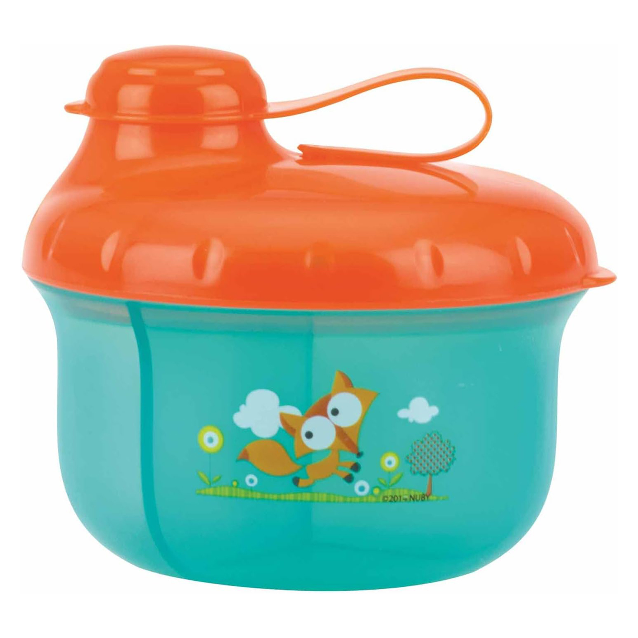 حافظ الحليب البودرة من Nuby سريع ومريح. مقسم إلى ثلاث خانات لقياس الحليب مسبقًا. الغطاء الصغير ثابت ولا يُفقد، بينما يثبت الغطاء الكبير بإحكام ويمكن تحريكه بسهولة للوصول إلى المحتويات بدون فوضى. مثالي للسفر ومصنوع من مواد خالية من BPA.