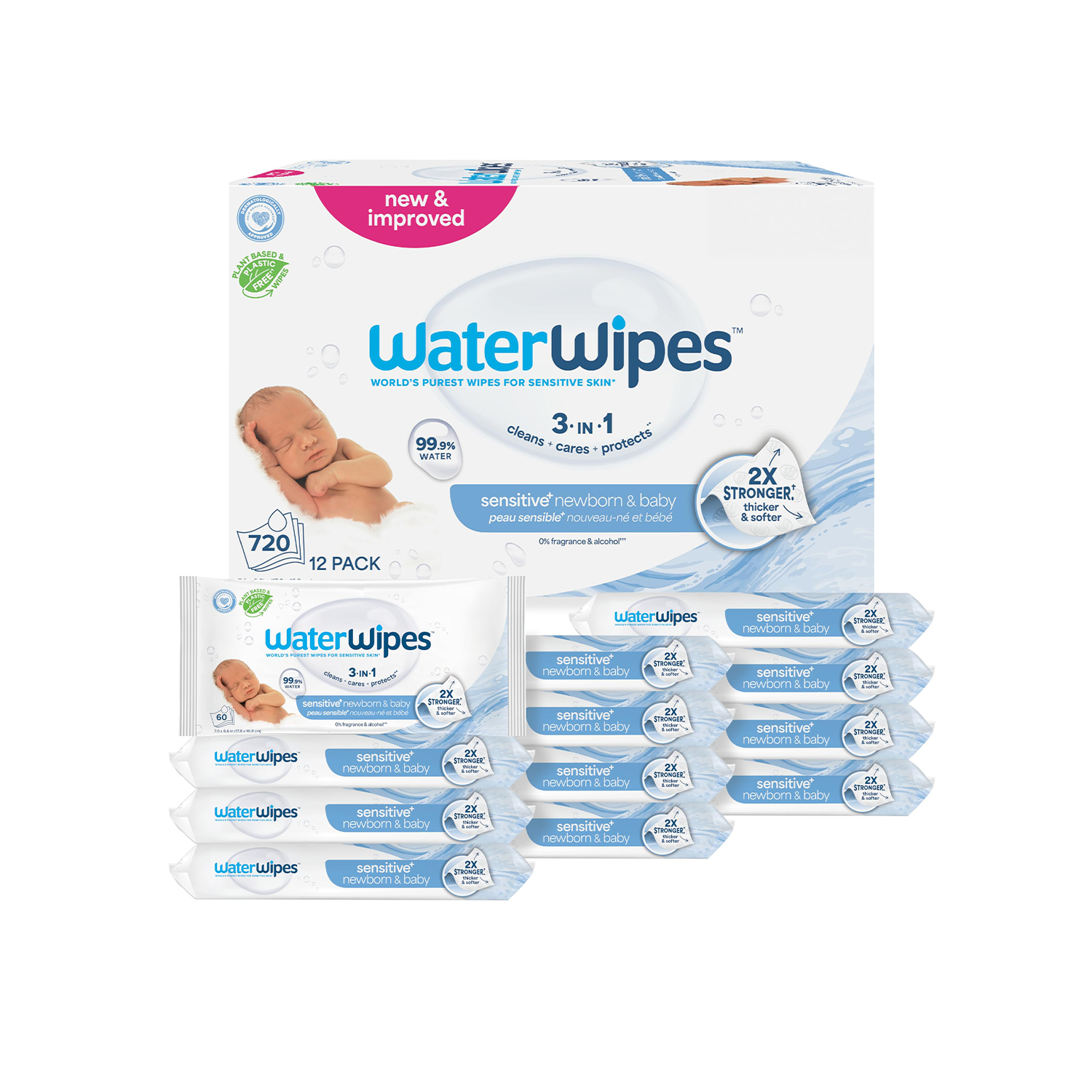 Water Wipes - Original Wet Wipes Carton, Plastic-Free, 99.9% Water - 12 Packs of 60 Wipes